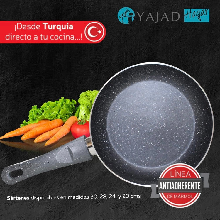 Sartén Antiadherente de Mármol Gris 20 cm Yajad Hogar | Aluminio Resistente para Cocción Saludable y Uniforme