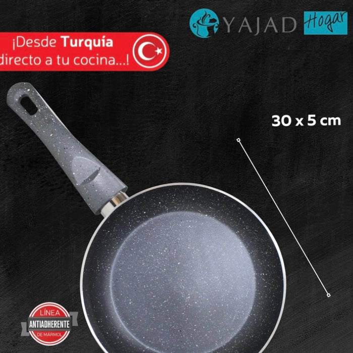 Sartén Antiadherente de Mármol Gris 30 cm Yajad Hogar | Aluminio Resistente para Cocción Saludable y Uniforme