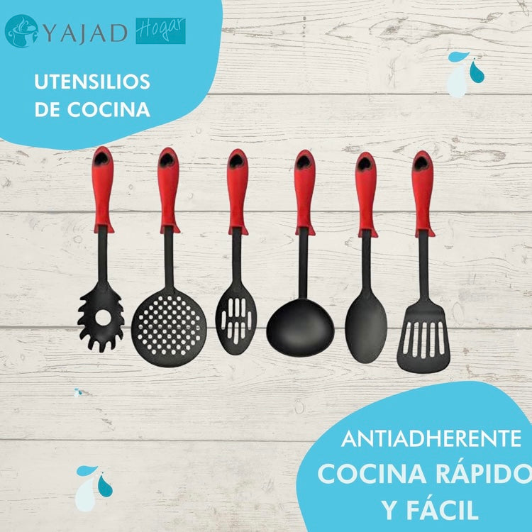 - MATERIALES DE LA MEJOR CALIDAD: Fabricados con nylon suave al tacto que no daña tus ollas y sartenes. Anímate a preparar las comidas que tanto te gustan, utiliza las cucharas, el escurridor y volteador sin temor a rayar la superficie de otros utensilios.