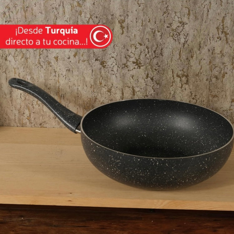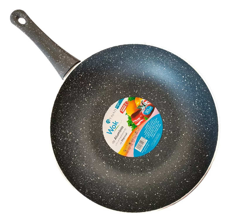 Fabricado en aluminio antiadherente, este wok es perfecto para cocinar una variedad de platos, desde salteados hasta frituras, sin la necesidad de usar grasa.